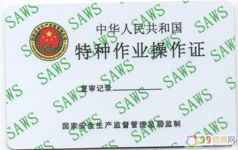 电工操作证,也称电工上岗证,即特种作业人员操作证(电工),从事电气设备安装、维修等工作必须持有的证件,是经过国家安全生产相关培训和注册的证明欢迎www.99xinxi.net。电工操作证分为高压和低压,作业电压一千伏以上用高压,作业电压一千伏以下用低压9+9+x+i+n+x+i+n+e+t。