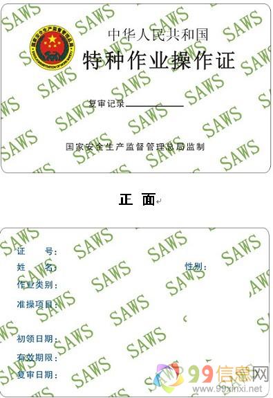 电工操作证即电工上岗证,也称电工操作证IC卡,每月考一次,人多可以随时安排考试9~9~信~息~网。电工操作证由安监局发证,不分级别,但操作证需要年审,每三年年审一次www.99xinxi.net99信息网。报考电工操作证需携带身份证复印件一份,一寸照片2张