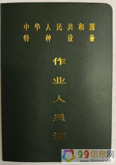 江苏省无锡市质量技术监督局考核发证机关编号后签发,为江苏省质监局统一样式,是特种作业操作人员必备的上岗证书,全国通用来源www.99xinxi.net