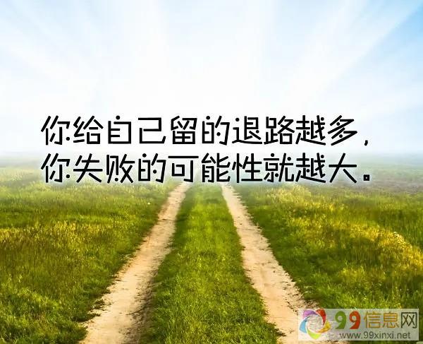 所有的努力,最终都会绕个大圈回报给你自己。多年后你会感谢曾经努力的自己。记住了万事还是要靠自己。能力得大过野心9_9_信_息_网。当我想起你的时候,我就充满了动力,因为我要过的比你好。我不甘心死在平庸里。你还年轻,别凑合过。坚持总会有回报的。