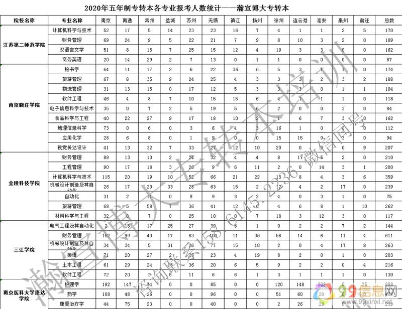 瀚宣博大专转本根据历年数据及部分院校所公布报名人数显示,近2年报考人数较多,考生每年主要集中在当地名气相对高的院校,而部分学校报名人数只能接近招生人数9_9_x_i_n_x_i_n_e_t。2020年医学类专业扩招近三倍,所以医学相关专业报考人数达到历年最高。所以建议基础不是非常好的考生谨慎选择学校。