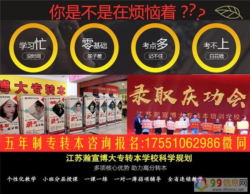 江苏瀚宣博大专转本学校专业从事五年制专转本辅导14年,是江苏省唯一1家线上辅导与线下面授课相结合大型连锁五年制专转本辅导机构,辅导课程全面高效,师资力量雄厚,通过率高达90%,选择瀚宣博大专转本没有错www.99xinxi.net99信息网。